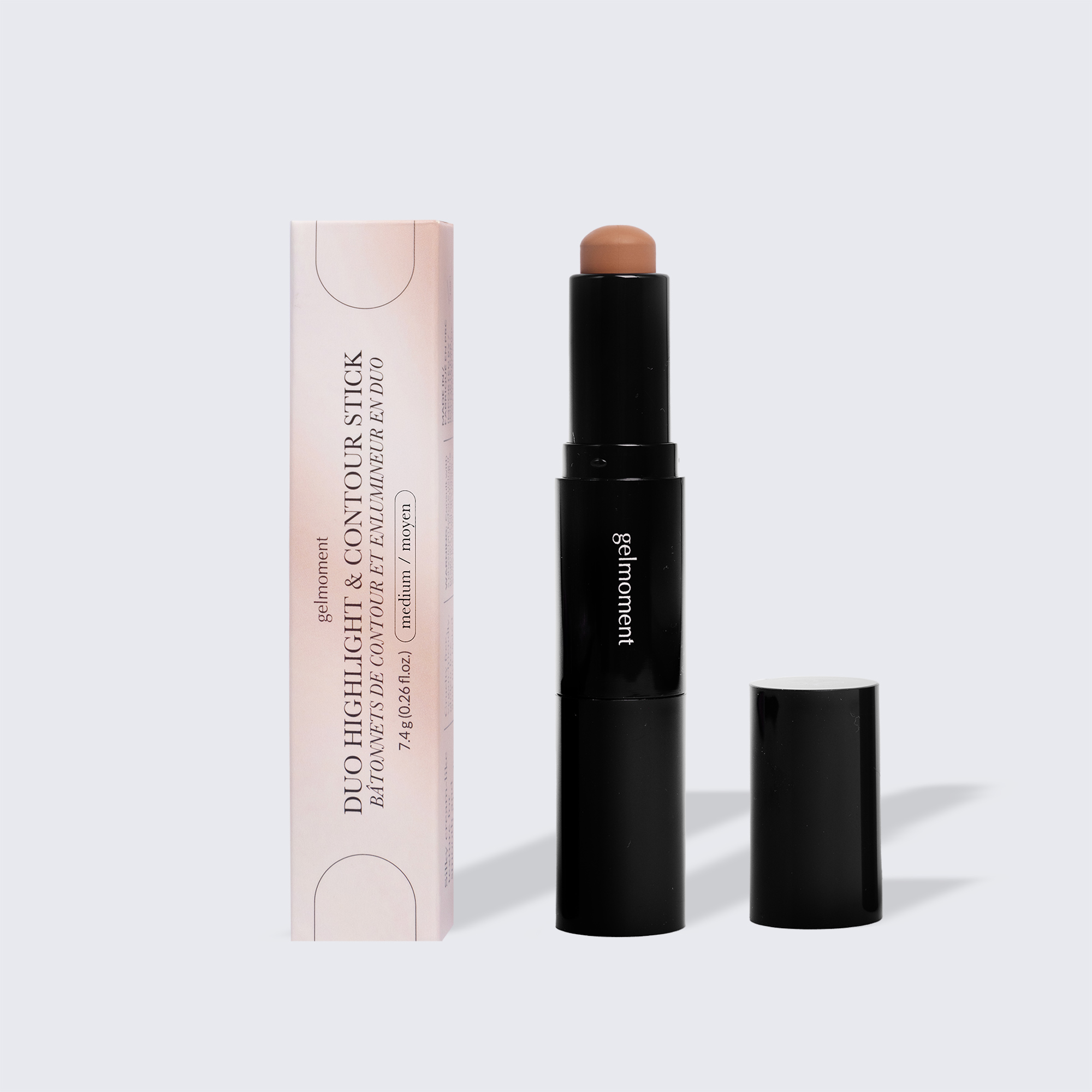 Our creamy contour & highlight duo are formulated to be lightweight and easily blendable using our “gelmoment brush”. Plus, our dual-sided applicator stick makes it easier than ever to use these complementary products together. Simply begin with the contour shade to add beautifully defined dimension to your face, then highlight to your heart’s content for a glowing finish.