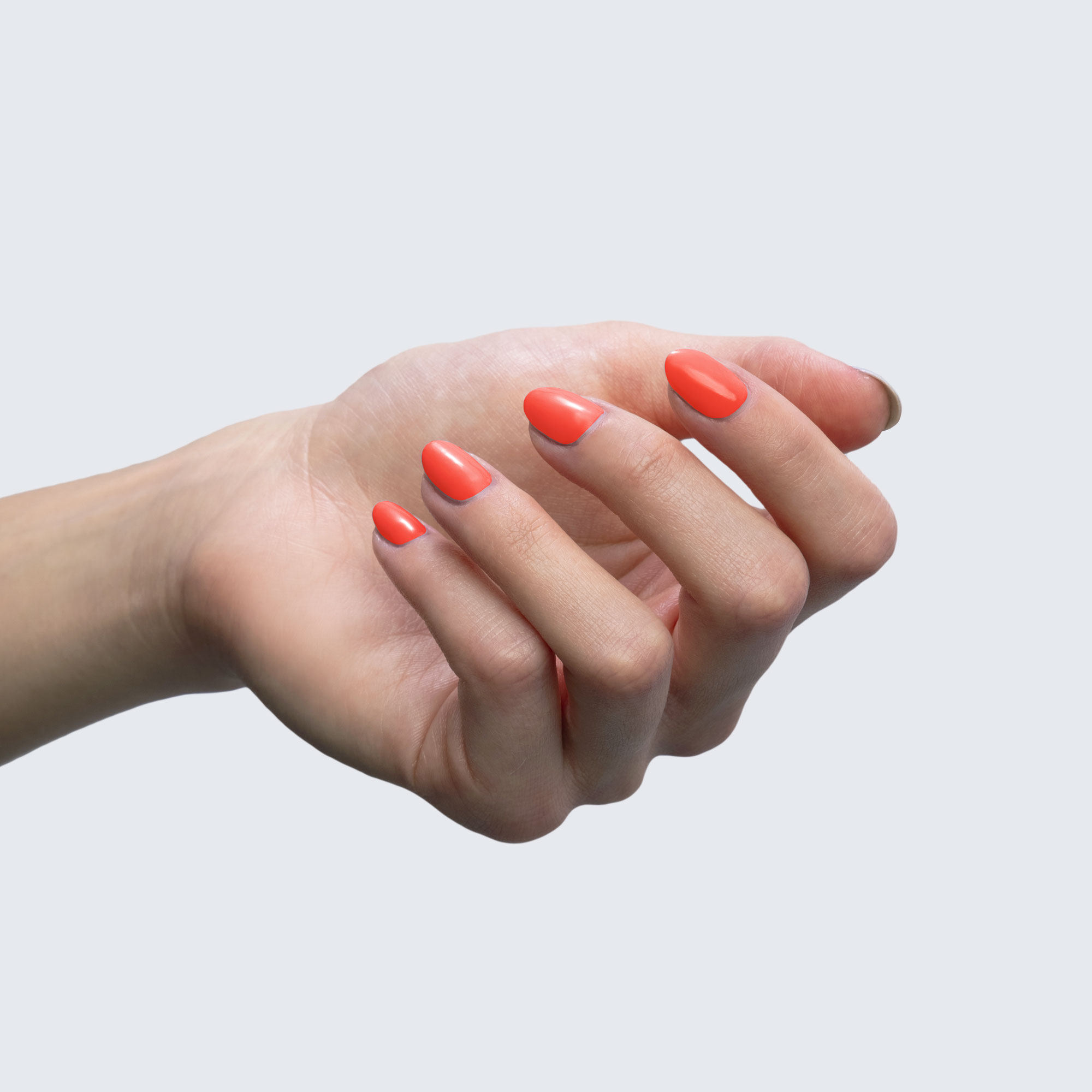 Neon pink-red. Medium. Bright. Opaque. Warm undertone.