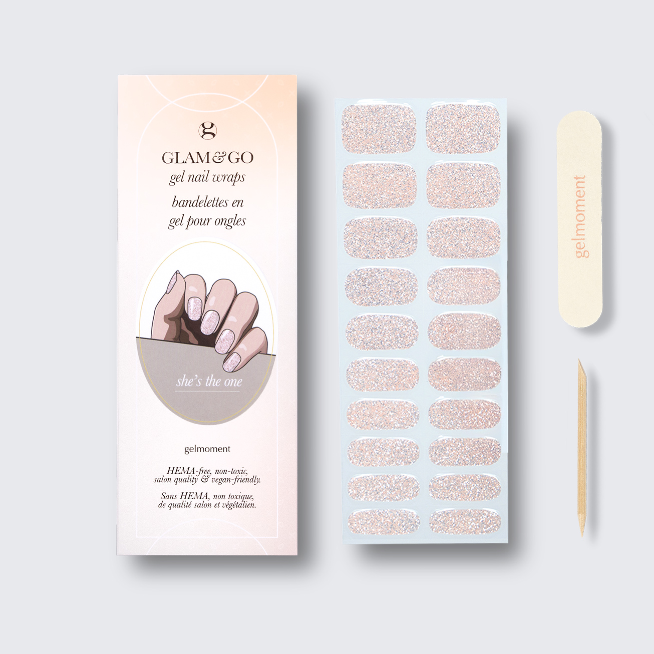 Take a moment to give yourself a head-turning, DIY gelmoment experience in a few easy steps with our GLAM & GO gel nail wraps.